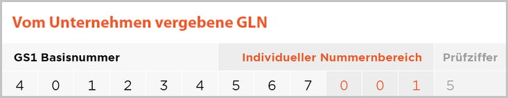. Sie setzt sich aus der GS1 Basisnummer Lokationsbezug und einer Prüfziffer zusammen. Je länger die GS1 Basisnummer ist desto kürzer fällt dementsprechend der individuelle Nummernbereich aus. Die GS1 Basisnummer nimmt die ersten 7 8 oder 9 Stellen ein. Die GLN globale Lokationsnummer Global Location Number ist eine 13-stellige Nummer die ein Unternehmen bzw.